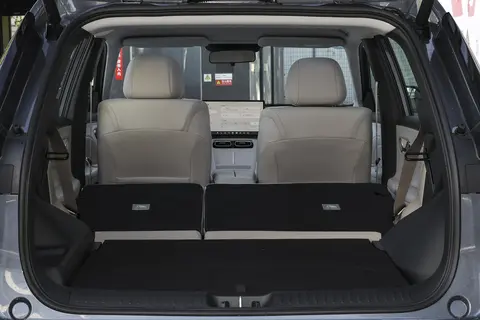 进入车内,燕麦奶白与暖绒浅棕的双色内饰带来温馨居家氛围。1860mm的整备质量并未影响空间表现,身高180cm的体验者在调整好驾驶坐姿后,后排膝部仍保有两拳余量,配合4/6比例放倒的后排座椅,能灵活组合出最大1600L的储物空间。实际测试中,后备箱在标准状态下可轻松容纳8个20寸行李箱,折叠后的后排座椅形成纯平载物台,配合车顶行李架,满足全家周末郊游需求。值得留意的是,设计师在细节处融入了诸多人性化考量:主驾专用手机支架安装底座解决了手机固定难题,副驾磁吸仪表板让化妆镜与收纳盒的使用更显优雅。当启用户外移动IMAX模式时,车规级投影仪可投射100英寸画面,配合11扬声器ADiGO Sound音响(升舱礼后),在露营地即可享受影院级体验。