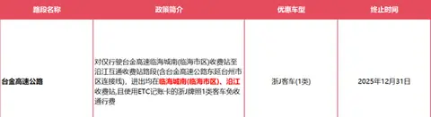 别忘了,ETC车主们还能享受基础95折的长效优惠,部分地区的ETC还能拿到免费或五折的特殊待遇,比如丽水松阳段就到2026年免费,温岭联络线的Z牌照车五折优惠也持续到明年年底。