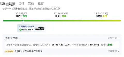 根据大数据预估显示,这款车的市场价格在15.6万至19.12万之间。具体价格受车况、里程数和保养情况等因素影响。购车时,请务必考虑车辆的真实状况,不要仅仅基于价格做出决策。