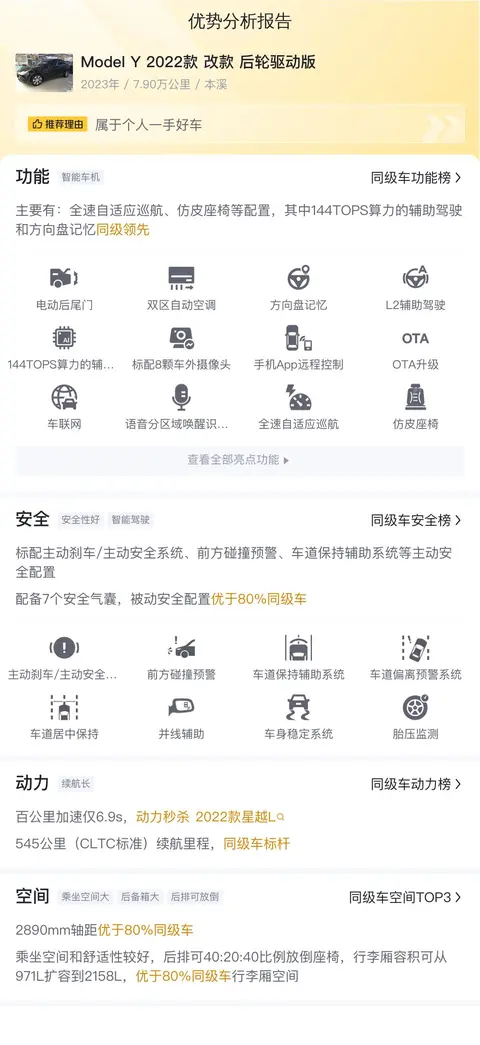 总结:在考虑购买这辆二手Model Y 2022款 改款 后轮驱动版时,我们不得不面对特斯拉频繁降价的问题。近期网上流传的降价传言再次将特斯拉推上了风口浪尖。作为消费者,在做出购买决策之前,务必关注官方最新动态,以免遭受不必要的经济损失。另外,这辆车目前没有提供第三方检测报告,所以暂无法为您评估车辆的车况。车况信息需要您线下结合车辆实际情况进行综合参考。