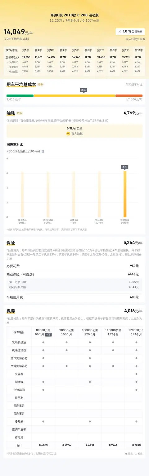 这款车的十年平均用车成本估算为14280元/年,我们选了一些同级别车型的用车成本给大家参考一下。