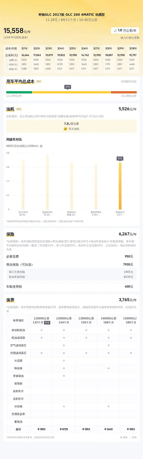 在用车成本方面,根据估算,这辆车的年均综合用车成本约为1.6万元左右。这里需要注意的是,实际用车成本可能会根据用车频率、环境条件以及驾驶习惯等因素有所变动。
