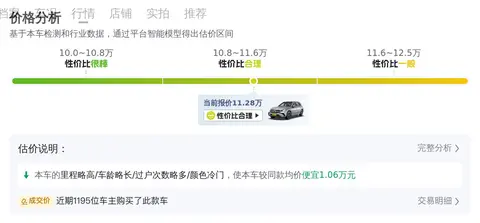 根据大数据预估显示,这辆车的市场价格在11.72万至14.47万之间。具体的价格因车辆的车龄、里程、外观内饰保养程度等因素而定,而本车11.28万的报价已经低于全国相似车辆成交均价,说明本车价格较便宜。