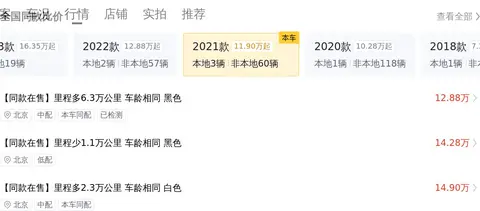 二手车的定价受多种因素影响,包括车龄、里程、车况、配置等,因此评估每一辆二手车的价值都需要独立考量众多变量。我们为您收集了这款车的全国在售情况,让您了解市场动态。