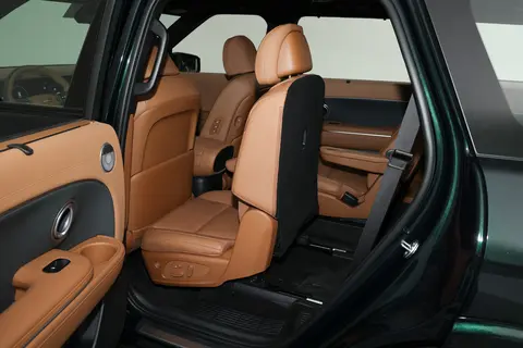 车身侧面的设计很规整,短前悬、长轴距和长后悬的搭配,不仅让车身姿态看起来很协调,还能最大化车内空间。立体感的轮拱和大尺寸轮毂,让车身侧面多了点运动感,不会显得太沉闷。 我试驾的这款鉴赏家版配备的是21英寸轮毂,搭配的是265/45 R21规格的轮胎,从视觉上看就很霸气,开在路上也很有回头率。实际行驶中,大尺寸轮毂的优势也很明显,在高速上行驶的时候,稳定性很好,就算遇到侧风,车身也不会有明显的晃动。