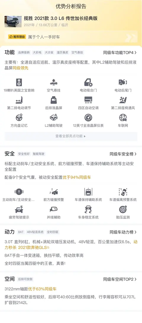 综上所述的新车含税价、用车成本、市场行情、优势分析、同款比价等数据仅供参考。在配置部分,因为二手车非标品,车辆可能会存在配置改装的情况,具体车况信息需要线下结合车辆实际情况进行综合参考。