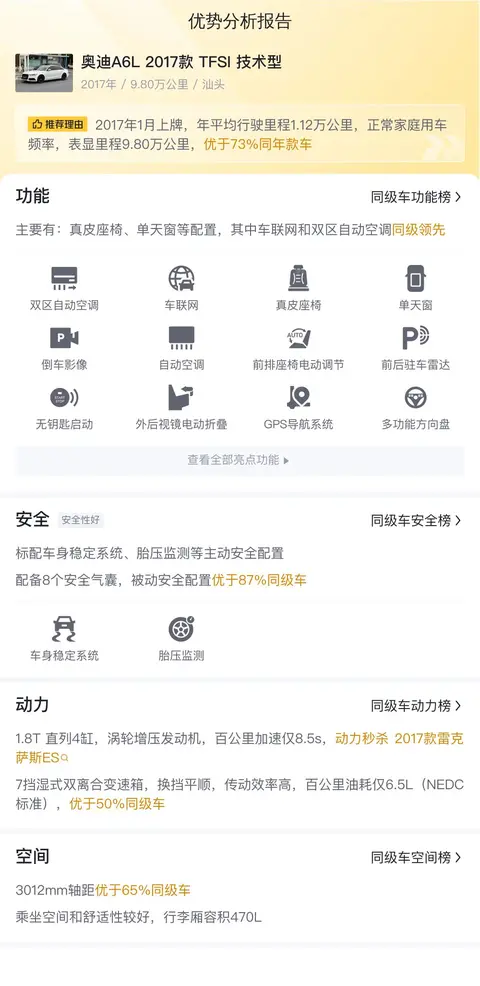 以上就是我们对这辆奥迪A6L 2017款 TFSI 技术型的全部介绍,如果您觉得不错,可以点击喜欢或者收藏哦!