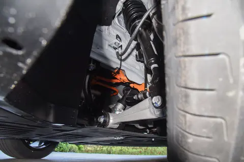 家庭开车看重行驶平稳,毕竟没人希望孩子在后排因颠簸哭闹。长安启源 A06 采用前双叉臂 + 后五连杆独立悬架,前后摆臂和羊角都是铝合金材质,比普通钢材重量轻。