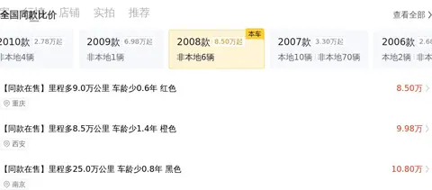 咱们先聚焦在这辆二手Cayenne的基础信息上。这车首次上牌时间是2008年9月,车源地跟上牌地都在成都,过户次数为1次。车身是那种亮眼的黄色,累积行驶里程约为8万公里。拿它跟同年的豪车SUV相比,行驶里程算是偏少的。这车的新车指导价是178.8万,而现在含过户费 35.8万就能拿下。