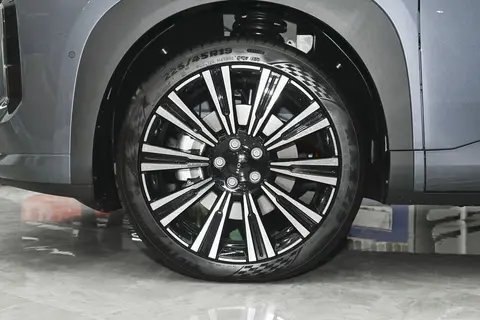 车辆采用豪华SUV的比例设计,方正轮廓与宽体车身带来强烈的力量感与豪华感。1:2.5的高车头比例、1:3的高车尾比例及1:4的极致头身比,让车身线条流畅协调,展现出大气磅礴的气势。外观颜色提供暖绒金、星河蓝、极地白、海萤灰、夜影黑、全息银等多种选择,适配不同用户的个性需求——其中全息银色车身搭配黑顶设计,更显时尚动感。车漆采用比同级多两道涂层的工艺,膜厚达30um,通过3C2B豪华车型涂装工艺处理后,表面顺滑通透,抗氧化抗UV能力翻倍,不易老化褪色,在光影下能呈现出极佳的质感与光泽。