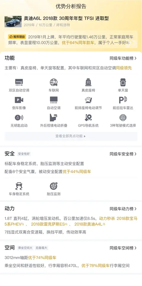 综上所述的新车含税价、用车成本、市场行情、优势分析、同款比价等数据仅供参考。在配置部分,因为二手车非标品,车辆可能会存在配置改装的情况,具体车况信息需要线下结合车辆实际情况进行综合参考。