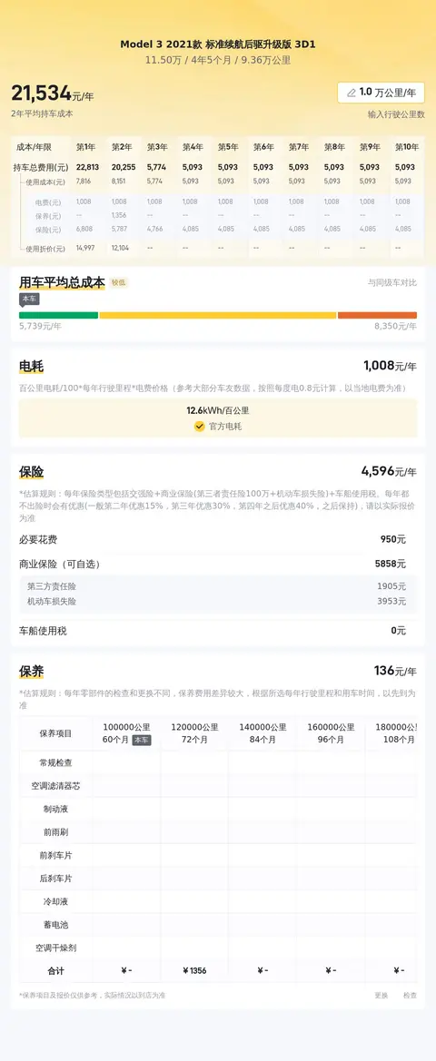 在用车成本部分,这辆车年均综合用车成本大概在每年2.2万元左右,当然具体用车成本跟车主的用车场景和用车强度有直接关系。