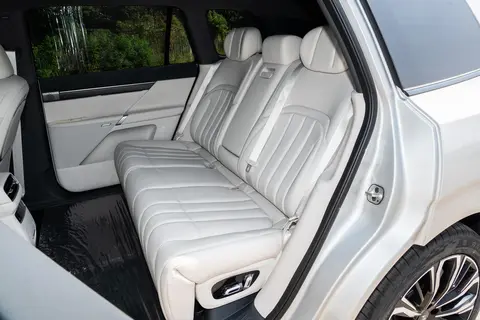 座椅的舒适度也算是比较突出的优点,尤其对比同级别车型。eπ008五座全车采用类似家里高档沙发的云感亲肤超软材质,手感很细腻,覆盖面积还高达18平方米,也就是不只是座椅正面,连门板、扶手都用同一种材料。夏天常常短裤短袖坐车,对皮肤敏感的孩子老人完全不会有“被冻到/硌到”那种感觉。另外,座椅功能很齐全,主副驾配了按摩、通风和加热,十点式按摩,每天长时间开车开启按摩,腰背压力可以缓解不少;冬天加热夏天通风,实用性明显提升。老人坐后排可以自行调节腿托和靠背,直接切换到“贵妃榻”模式,坐着的时候腿向前伸、头可以稍微后仰,而不用委屈地坐得笔直,提升舒适感。家里人特别喜欢后一排座椅可以全部放倒,平躺下来直接就能形成超大休息空间,这对长途出行或者偶尔宿车露营是一种“移动家庭”的体验。