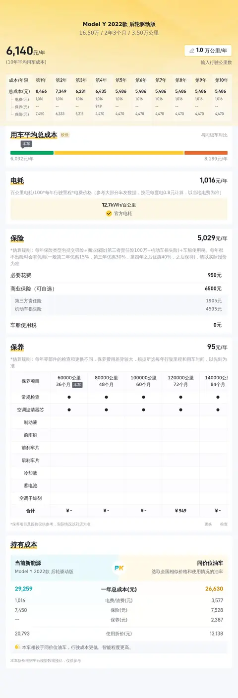 按照懂车帝平台的大数据分析,这辆Model Y 2022款 后轮驱动版的价格在15.67-18.91万之间,具体的价格要看实际的车况表现。这台车的报价16.5万,基本处于合理的范围之内。在行驶一年多的时间,行驶里程3.5万公里,从使用角度来说,这台车还处于比较好的状态。考虑到特斯拉的品牌影响力和这款车的性能,选择它还是不错的。