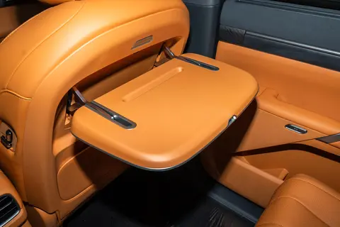 eπ008前排座椅功能齐全:可电动调节位置、记忆偏好,还带通风、加热、按摩功能,主驾驶额外有电动腰托,久坐更舒服。后排取消第三排后,空间大幅提升——身高175cm的人坐第二排,腿部能留出三拳以上距离,加上纯平地板和1536mm宽的车厢,三人并排坐也不挤。“魔毯”座椅系统更灵活:腿托可4/6分割调节,靠背能电动调整,一键就能变成“贵妃榻”或“单人床”,全放倒后形成2.4米×1.5米的休息区,配合全景天幕和220V电源,像个小房车。储物方面,常规后备箱495L,能装婴儿车、露营装备;全放倒后空间更大,自行车、小家具也能塞下。车载冰箱、方向盘加热等细节,让日常使用更顺手。