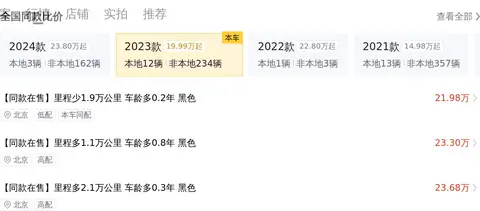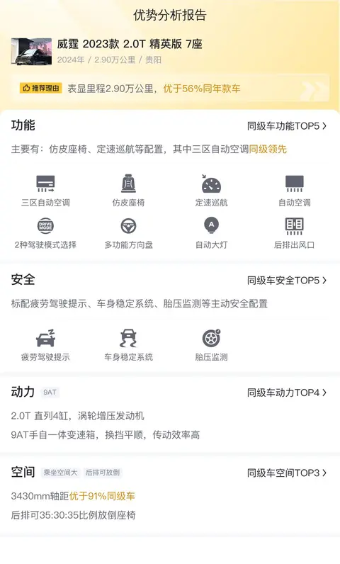 威霆 2023款 2.0T 精英版 7座,新车含税价为32.13万,现在的二手车报价是27.8万,2024年1月首次上牌,在此期间过户1次。