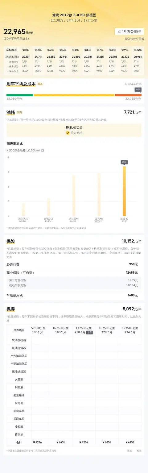 综上所述的新车含税价、用车成本、市场行情、优势分析、同款比价等数据仅供参考。在配置部分,因为二手车非标品,车辆可能会存在配置改装的情况,具体车况信息需要线下结合车辆实际情况进行综合参考。