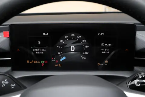 中控台的布局简洁规整,10.25 英寸全液晶仪表与 12.9 英寸悬浮式中控屏组成的双联屏系统,成为内饰的视觉核心。两块屏幕的边框控制得十分纤细,不仅提升了屏幕的显示占比,也让整体视觉效果更显精致。全液晶仪表能够清晰显示车速、转速、导航信息等核心驾驶数据,界面布局合理,读取便捷;悬浮式中控屏的操作逻辑简洁直观,支持多点触控,反应灵敏度表现出色。