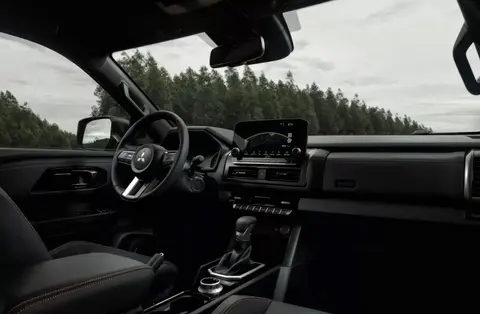 内饰部分,整体采用深色基调,搭配橙色缝线点缀,营造出运动且耐脏的座舱氛围。座椅采用耐磨的织物与仿皮拼接材质,支撑性与包裹性兼顾,可有效应对颠簸的越野路况。中控台配备10.25英寸悬浮式中控屏,内置三菱最新的信息娱乐系统,支持蓝牙连接、手机互联等功能,操作便捷。方向盘采用多功能设计,集成定速巡航、音响控制等按键,同时配备手动空调、USB充电接口等实用配置,满足户外出行的基本需求。