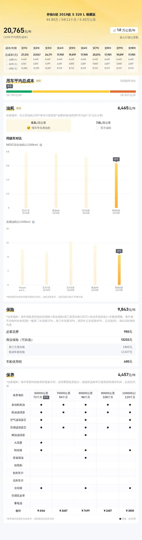 在用车成本上,根据我们估算,这辆车的年均综合用车成本约2.1万元左右。这项花销是跟车主的实际用车场景和使用强度有直接变化的。