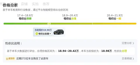 在市场行情中,这款车的行情大致在18.63万至22.54万,而这款车的价格是18.98万,价格较低,是一个不错的选择,而且保值率也高。
