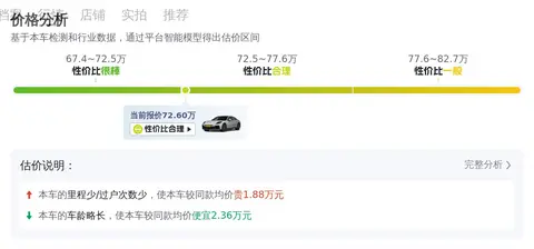 这辆曾经的新车,如今表显里程为2.4万公里,首次上牌时间为2022年1月,车牌和车辆所在地都在合肥,该车符合国VI排放标准,至今无过户记录。车身颜色为深灰色,这种低调的颜色比较容易打理,脏了也不太看不出来。这车新车含税价106.17万,目前二手车报价72.6万,相比之下还是有一定性价比的,这种高端车型,保值率还是比较重要的,我们可以看到,这辆车预计再行驶2年后还可卖57万左右,约折价20.9%。