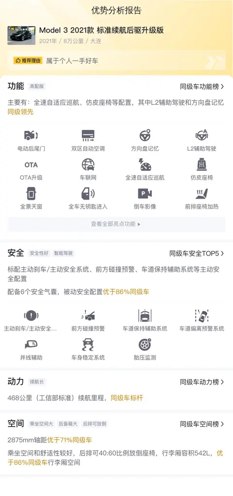 当谈论到电动汽车,特斯拉的名字总是第一个跳入人们的脑海。自2003年成立以来,特斯拉以其创新技术和对可持续能源的承诺,彻底改变了我们对汽车的认知。今天,我们要聊的是一辆二手2021款Model 3(图片|配置|询价)标准续航后驱升级版电动汽车,这款车不仅继承了特斯拉的品牌精神,更以其卓越的性能和合理的价格,成为了市场上的“实力派选手”。接下来,让我们从多个角度详细分析这辆车的各项数据,看看它是否真的像人们所说的那样出色。