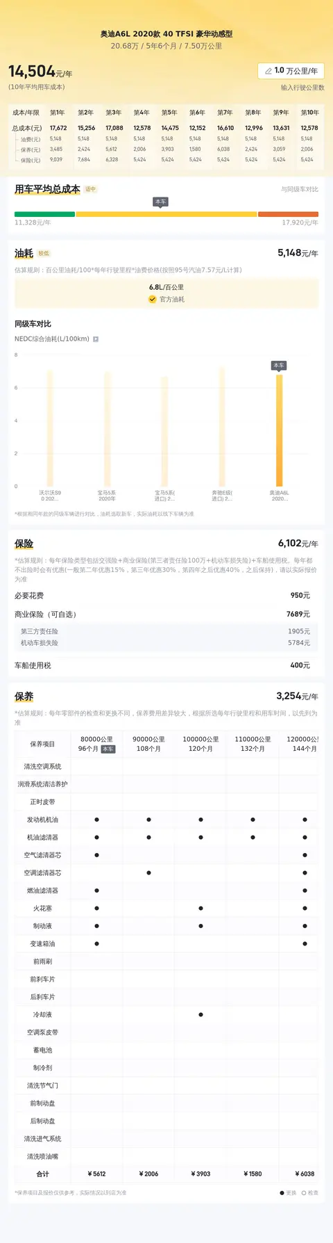 用车成本方面,按一年20000公里计算,本车每年燃油、保险及保养的综合用车成本约13774元,具体费用要看用车频率及使用环境而定。