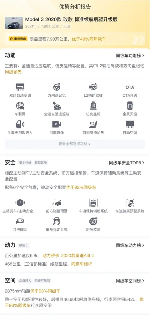 从功能配置方面看,这辆二手Model 3 2020款 改款 标准续航后驱升级版都有那些表现呢?
