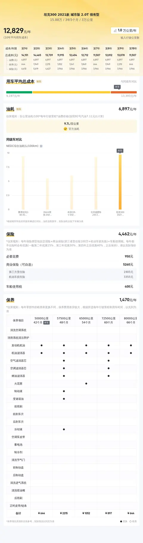 关于用车成本,根据估算,这辆车的年均综合用车成本在1.3万元左右,当然具体用车成本金额还是根据车辆的实际使用情况而决定的。