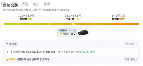 根据大数据预估显示,这辆车的市场价格在13.32万至16.47万之间。具体的价格因车辆的车龄、里程、过户次数、颜色等因素而异。考虑到这辆车的车龄适中、里程数稍高、过户次数较少、颜色为黑色(更受欢迎),如果它的售价在14.89万左右,则属于比较合理的区间。当然,具体的售价还需要根据车辆的实际状况和市场行情来确定。