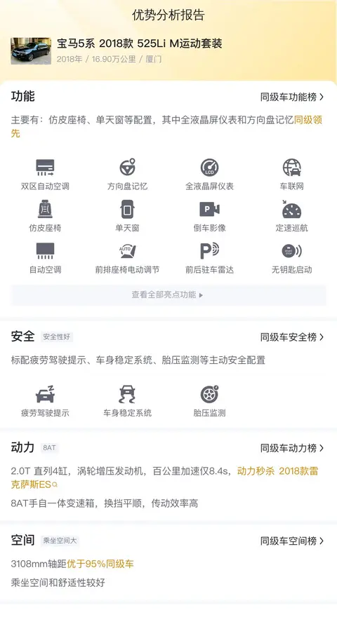 1优势:作为宝马品牌旗下的车型,该车在品牌知名度和市场口碑方面具有一定的优势。此外,其宽敞的内部空间和舒适的乘坐体验也是该车的一大卖点。在配置方面,全液晶屏仪表和方向盘记忆等配置表现出色。动力方面,2.0T发动机和8AT变速箱的组合提供了良好的动力输出和平顺的驾驶感受。在车身尺寸方面,该车的长度和轴距都比较大,这为车内乘客提供了较为宽敞的空间。尤其是3108mm的轴距,在同级别车型中表现突出。