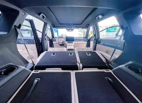 真正的亮点在于其座椅的百变功能。通过11处电动调节按钮,可以实现多达32种的座椅组合模式。其中吸引人的是“一键躺平”功能。例如,将全车七座放平,可形成一个长度接近3米的平整空间,瞬间变身“超级大床房”,无论是孩子途中玩耍休息,还是成人小憩,都非常实用。针对不同出行场景,它还提供了多种躺平模式:情侣出行可形成2米长的旅行大床;单人午休时,通过组合副驾和后排座椅,也能营造出舒适的休息空间。第三排座椅的进出也设计了一键电动调节,方便老人和小孩上下车。