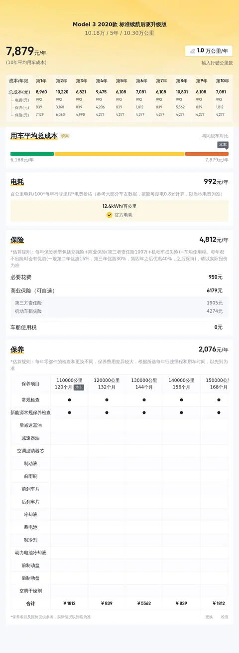 购买二手车,除了考虑购车成本外,还要考虑用车成本,根据懂车帝官方大数据分析,这辆车的10年平均用车成本约为23188元/年。