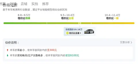 按照新能源车二手车定价模型估算,这辆车的二手车合理价格在9.75万至11.96万之间,该车报价处于合理范围内。