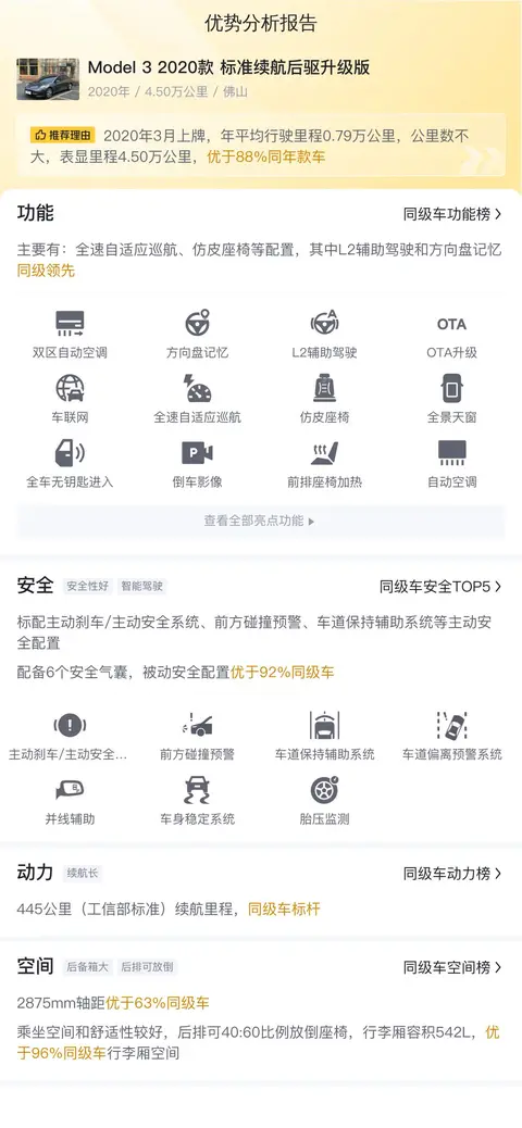根据估算,这辆二手Model 3的年均综合用车成本约为8,181元,这包括了电费、保险费和保养费等。与燃油车相比,电动汽车的用电成本显著降低,且保养相对简单,这有助于减少长期使用成本。