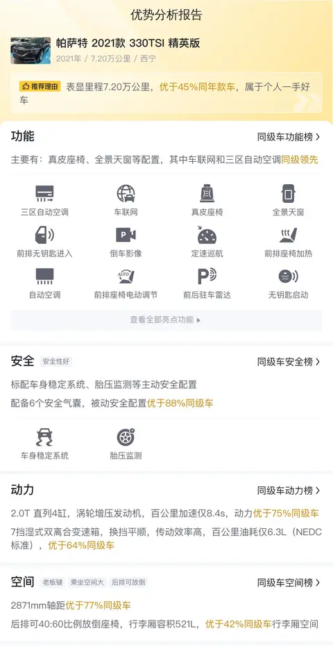 综上所述的新车含税价、用车成本、市场行情、优势分析、同款比价等数据仅供参考。在配置部分,因为二手车非标品,车辆可能会存在配置改装的情况,具体车况信息需要线下结合车辆实际情况进行综合参考。