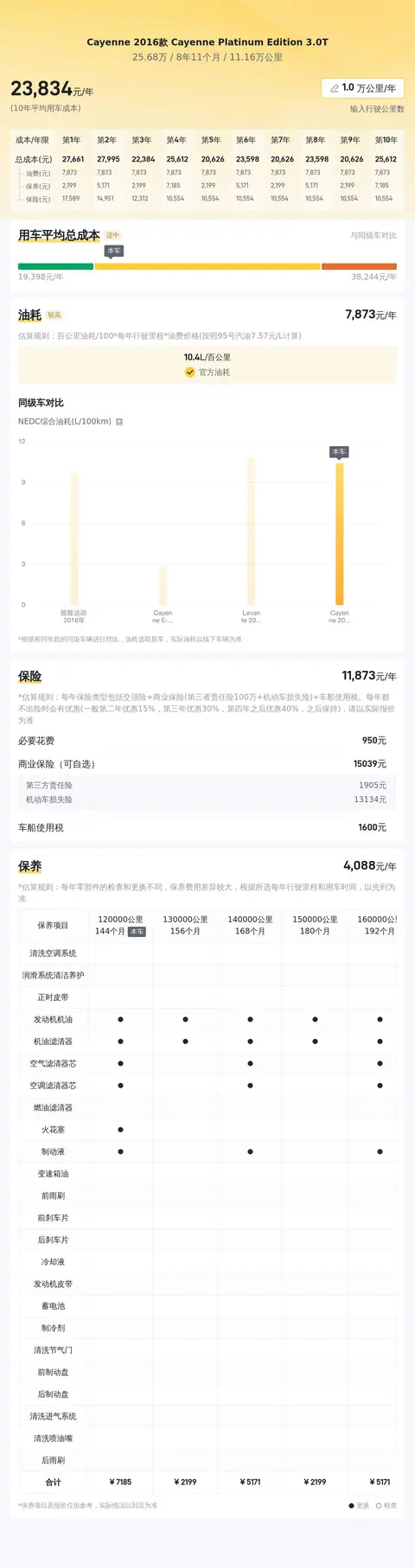 综上所述的新车含税价、用车成本、市场行情、优势分析、同款比价等数据仅供参考。在配置部分,因为二手车非标品,车辆可能会存在配置改装的情况,具体车况信息需要线下结合车辆实际情况进行综合参考。