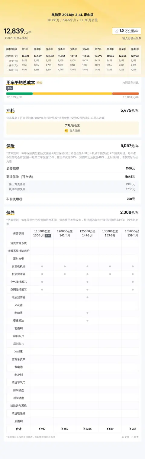 在用车成本方面,根据相关数据显示,这辆车的10年平均用车成本约为13443元/年,这是一个相对合理的水平,与同级别车型相比并无明显劣势。值得注意的是,由于车辆使用年限的增加以及车况维护的好坏,实际用车成本可能会有所浮动。