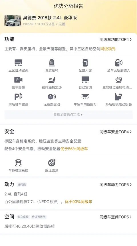 综上所述的新车含税价、用车成本、市场行情、优势分析、同款比价等数据仅供参考。在配置部分,因为二手车非标品,车辆可能会存在配置改装的情况,具体车况信息需要线下结合车辆实际情况进行综合参考。