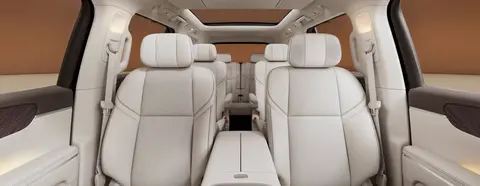 来到后排,“冰箱、彩电、大沙发”也是理所当然地搭载上车。而除了21.4英寸的3K电动娱乐屏以外,零跑D19的后排还有一个6英寸的多功能控制屏可用来操作。而除了以上大六座SUV普遍都有的内容之外,车载制氧机、隐私窗帘等都有搭载,并且二排的左右两边也都配备了小桌板,注意观察的话,各位还能发现小桌板上方还有专门的置放杯架,在目前的大六座SUV市场中,这样的细节处理确实是相对罕见。