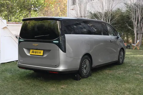 车身侧面,新车采用平直的线条设计,尽可能的追求更出色的空间表现。车顶采用悬浮式设计,整体车侧在细节处加入一些金属镀铬装饰。此外,车辆还将配备大尺寸的电动踏板。车辆尾部依旧延续整体的大气设计,贯穿的尾灯组合成X造型,智驾小蓝灯融入其中。车身尺寸方面,车辆长宽高分别为5360/1998/1920(1940)mm,轴距为3200mm。