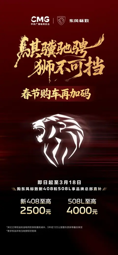金马迎春,喜气盈门。新岁已启程,奔赴全新征程与向往。每一段前行之路,都需要可靠相伴,一辆靠谱的座驾,能以全能实力护航前路,更能为新程增添底气。为降低用户购车门槛,升级出行体验,东风标致新408推出优惠购车政策,享购置税减半,并叠加国家补贴、置换支持、金融贴息等多重福利,更有限时品牌直补,助力用户省心购车。