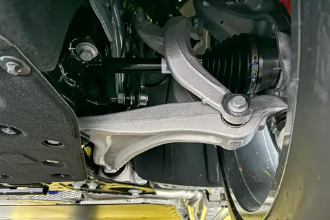 底盘和转向方面,它采用了前双叉臂、后多连杆式的独立悬挂。这种结构在理论上有利于兼顾一些操控稳定性和乘坐舒适性。实际行驶中,对路面细小颠簸的过滤,以及过弯时车身的侧向支撑,是这套悬挂调校需要平衡的地方。转向系统是电动助力,通常情况下会比较轻盈,方便在市区挪车和掉头。驱动方式是前置四驱,具体为电动四驱,这意味着前后桥的动力分配可以由电脑根据路况快速调整,对于一些湿滑路面或非铺装路面,能提供相对更好的行驶稳定性。轮胎的规格是前255/50 R20,后285/45 R20,后轮更宽的设计通常是为了提供更强的抓地力,配合超过2.5吨的车重,能让人对行驶的安稳感有一定预期。转向手感是这台车沟通的核心。它的回馈力度均匀,车头响应线性,没有许多电动车常见的电子黏滞感。在蜿蜒道路中,前双叉臂悬挂提供了清晰的几何约束,轮胎的抓地极限显得宽裕。电动四驱系统在弯中的动力分配颇为智能,出弯加速时能感到后桥更为活跃,帮助车尾柔和地向外舒展,增添了一份灵动。尽管车重可观,但低重心和坚韧的悬挂让侧倾被抑制在一个得体的范围内。它给人的感觉是稳健而可预判的,快跑时有一种从容的精准。